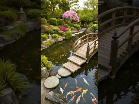 Relaxing Koi Pond & Wooden Bridge in a Zen Garden #KoiPond #ZenGarden #JapaneseGarden