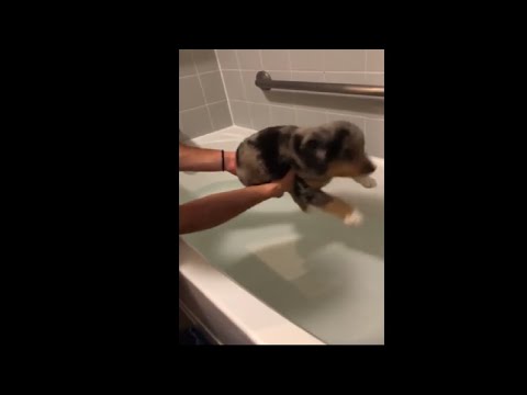 Puppy Pretends To Be Swimming Before Getting Into The Bathtub