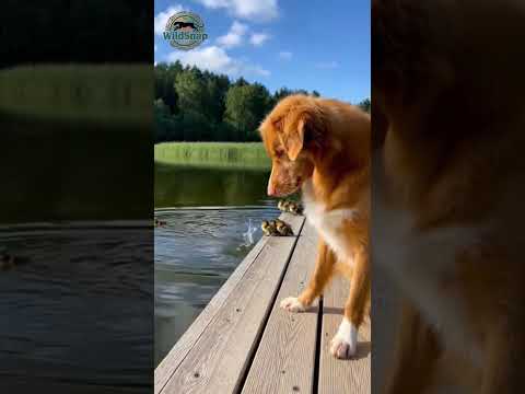 Dog Swimming With Ducklings