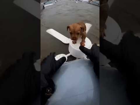 I found a puppy sitting on a fan surrounded by flood water 🐶❤️