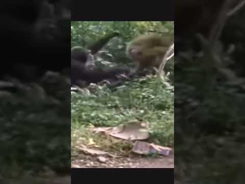 super quick fight between 2 chimpanzees and a baboon #baboon #fight #chimpanzee #fyp #trending