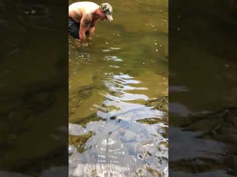 Noodling a 50 pound catfish