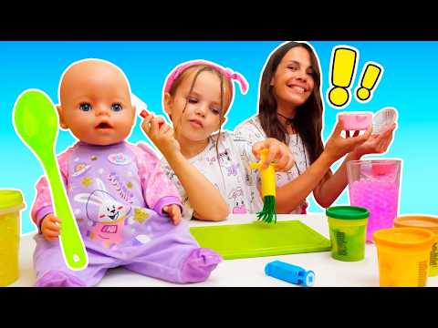 Soupe maison pour la poupée Baby Born. Les aventures de Maya et Lina. Pour les enfants