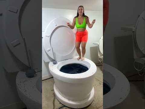 SUPER HIGH JUMP into Worlds Largest Toilet Black Pool in Slow Motion BIG SPLASH #shorts🤣🤣