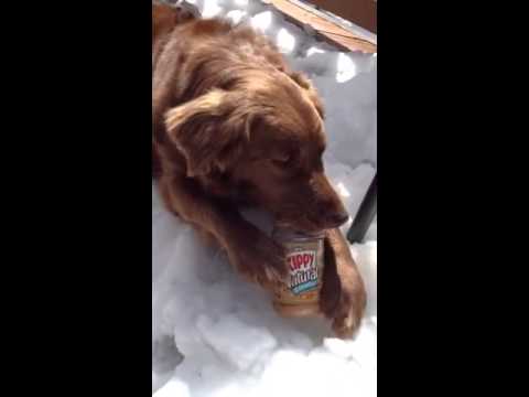 CocoaTheTourDog - Eating Peanut Butter