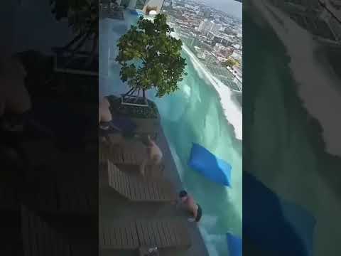 Terrifying moment earthquake strikes infinity pool in Bangkok