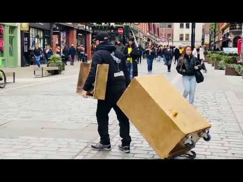 How London Levitating Gold Man is entertaining the audience with a little friend 🤣.