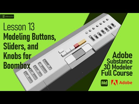 Modeling Buttons, Sliders, and Knobs for Boombox | Lesson13 | Adobe Substance 3D Modeler Full Course