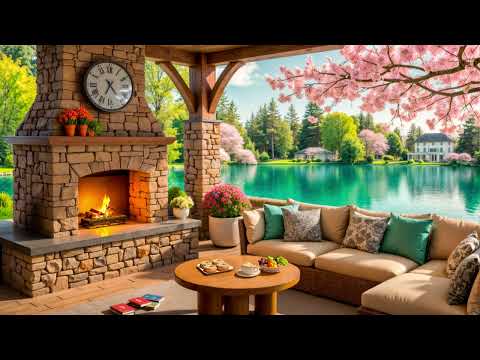 Peaceful March Spring Morning 🌸 Cozy Lakeside Coffee Porch Ambience & Soft Jazz Music for a Good Day