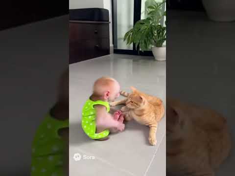 Baby and Cat: The Cutest Best Friends Forever ππ₯°#catshorts #viralshorts #shortsfeed