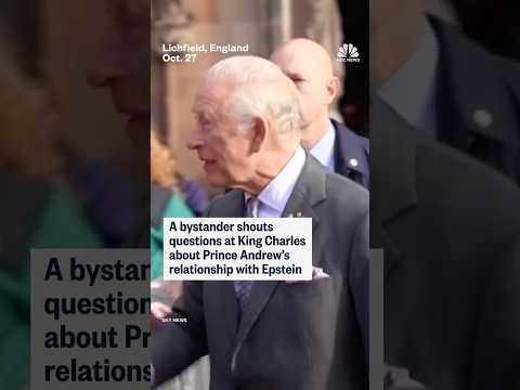 A bystander shouts questions at King Charles about Prince Andrew's friendship with Epstein