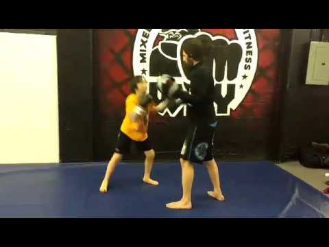 Forrest Denz hitting pads with coach Caveman