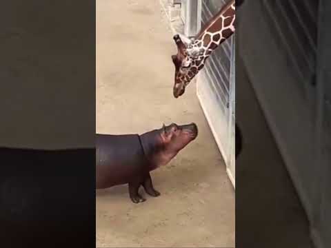 Baby Hippo Making Friends with a Giraffe by - ViralSnare Rights Management
