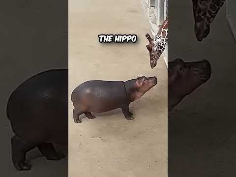Baby Hippo Makes FRIENDS With Giraffe! (via YouTube @ViralSnareRightsManagement)