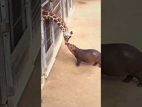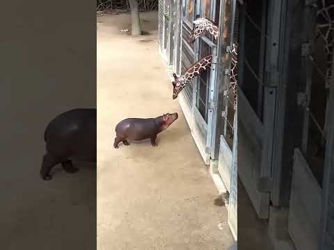 Baby Hippo Meets Giraffe for the First Time π¦π¦Β Β #hippo #giraffe #baby