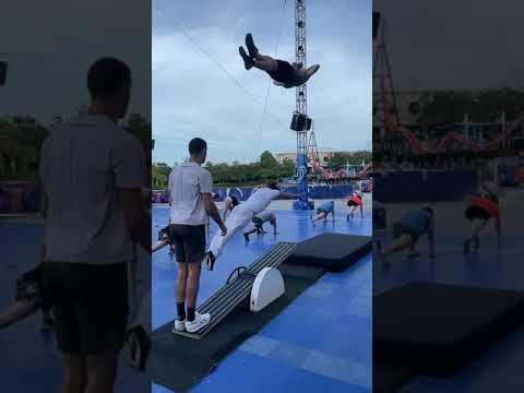 HUGE backflip over an acrobat doing a dive roll!
