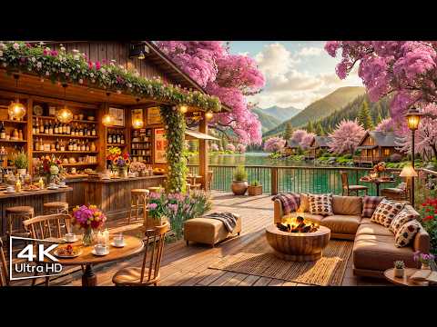 Peaceful March Spring Morning 🌸 Cozy Lakeside Coffee Porch Ambience & Soft Jazz Music for a Good Day
