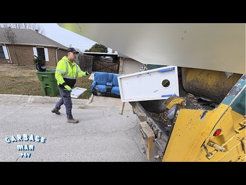 Rearloader Truck Picking Up Bulk Trash - Full Garbage Route POV | 4K HD