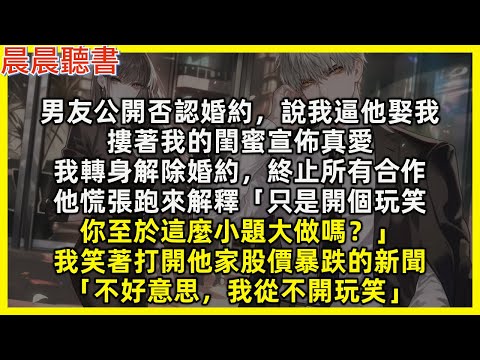 男友公開否認婚約,說我逼他娶我,摟著我的閨蜜宣佈真愛,我轉身解除婚約,終止所有合作,他慌張跑來解釋「只是開個玩笑,你至於這麼小題大做嗎?」我笑著打開他家股價暴跌的新聞「不好意思,我從不開玩笑」
