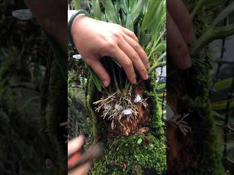 Best method simple grafting dendrobium nobile plant on the wooden log #short #orchid #plants