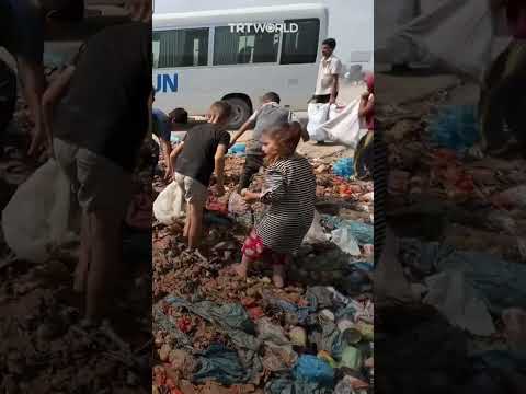 Children search garbage for food amid Israeli blockade in Gaza