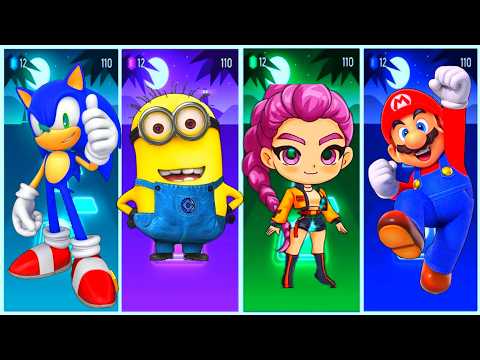 Sonic Hedgehog vs Minions vs Super Mario vs Pj Masks.Tiles hope edm rush game.
