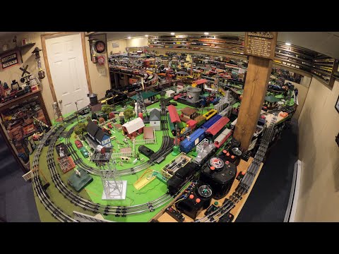 Huge Lionel O Gauge Model Train Display Full Tour! 25 years old! Wait until you see it in the dark!