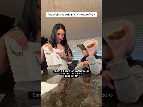 Practicing reading with my Deaf son #signlanguage #parenting #deaf #cochlearimplant #asl