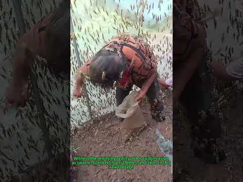 Terrifying scene as millions of locusts swarm down on a village. #animals
