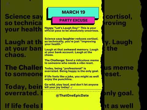 March 19: Why Laughter is Your Only Legal Requirement Today! 😂 | Party Excuse #march19 #party #fun
