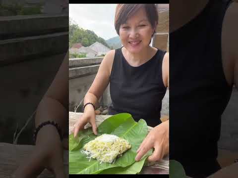 Sticky green rice with coconut shreds & lotus seed wrapped in leaves. 🇻🇳 #hanoi #shorts