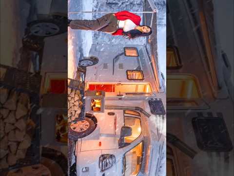 ❄️OVERNIGHT SNOW CAMPING IN A CARAVAN. #camping #campinginsnow