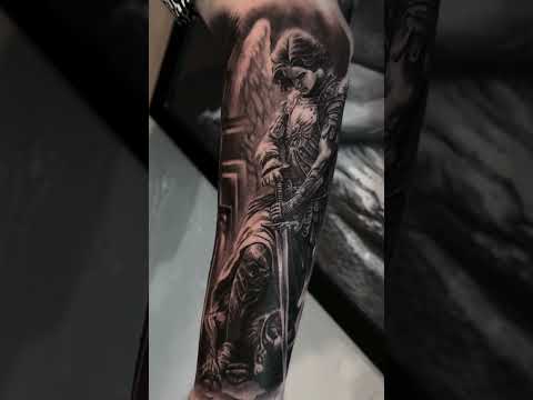 Archangel Michael Forearm Tattoo | Warrior Angel in Black and Grey. #tattoo #angeltattoo
