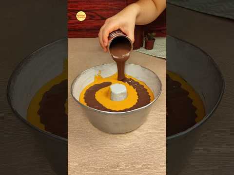 Bolo de cenoura que já sai recheado do forno! #bolo #bolodecenoura #confeitaria #chocolate #receitas