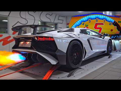 iPE Titanium straight piped Lamborghini Aventador SV on the DYNO | BRUTAL V12 Sounds & Flames!