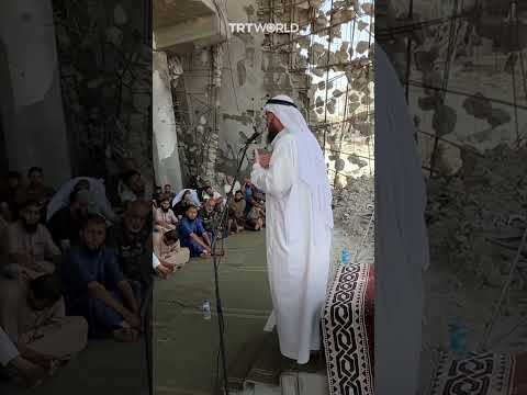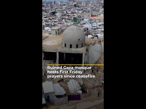 Ruined Gaza mosque hosts first Friday prayers since ceasefire | AJ #shorts