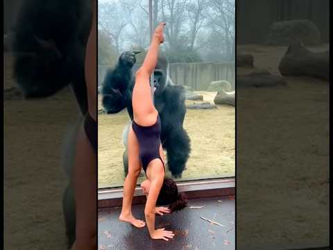 She Tried a Handstand Near the Gorilla… Then THIS Happened 😳🦍 #viral #animals #shorts