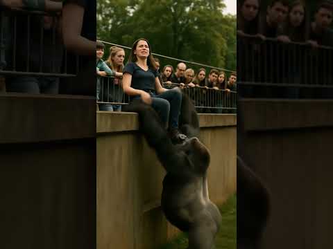 Is this gorilla trying to save the girl? #animals #wildlife #gorilla #shorts