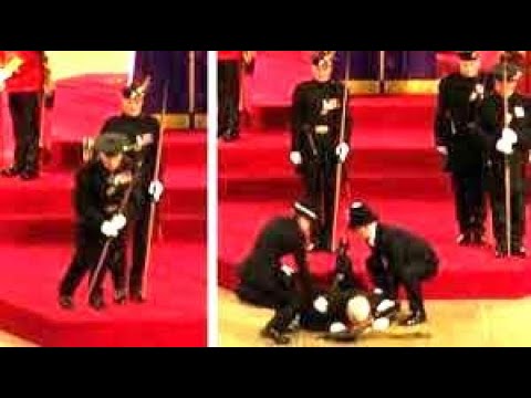 Royal guard watching over Queen’s coffin collapses