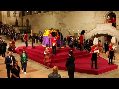 Royal guard collapses next to Queen’s coffin on first night of lying in state