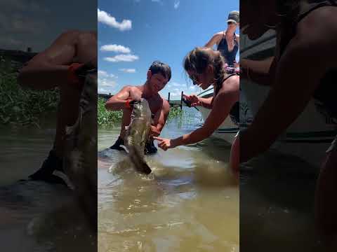 My girlfriends first time holding a catfish. Watch the full video to see the next one tailslap her😅