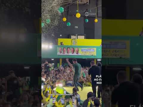 Flávio Bolsonaro dança ao fazer aceno a eleitores em comício