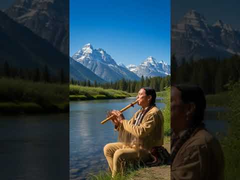 Native American playing a wooden flute ποΈπΆβ°οΈ #NativeAmerican #Flute #Water #Mountains #Nature