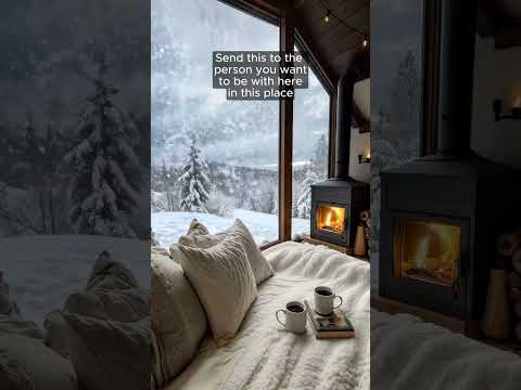 COZY WINTER CABIN WITH FIREPLACE AND SNOW OUTSIDE 4K