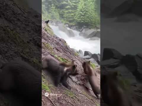 Bear falls off cliff!!#shorts #shortz #bear🐻