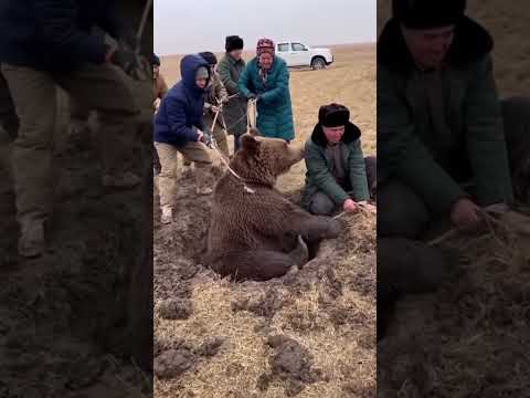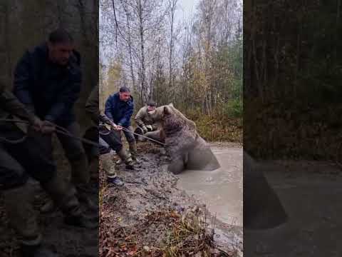 Watch the AMAZING Rescue of a Bear Stuck in the Mud #animal #animalrescue