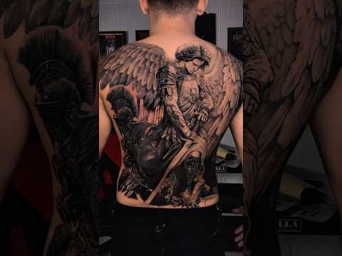 FULLBACK TATTOO (ST. MICHAEL ARCHANGEL & SPARTAN) #tattoo #fullbacktattoo #angeltattoo #spartan