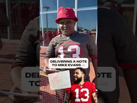 Hand-delivering a note to your role model is what Training Camp is all about 💌 #mikeevans #fan #nfl
