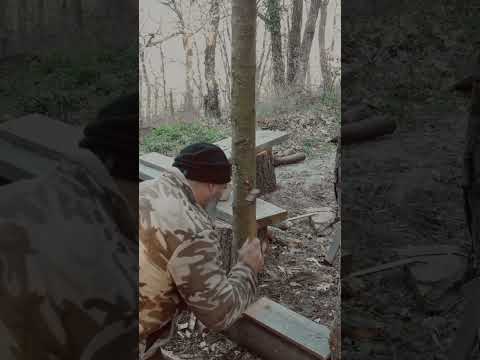 Mur en bois cordé sec sans enduit #bushcraft #cabane #forêt