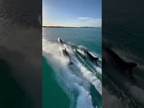 Unexpected magic at sea π¬ A pod of dolphins leaps together,